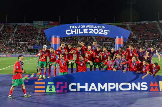 19日在智利首都圣地亚哥举行的2025国际足联U20男足世界杯决赛中,摩洛哥队以2:0击败阿根廷队夺得冠军,创造球队历史。
