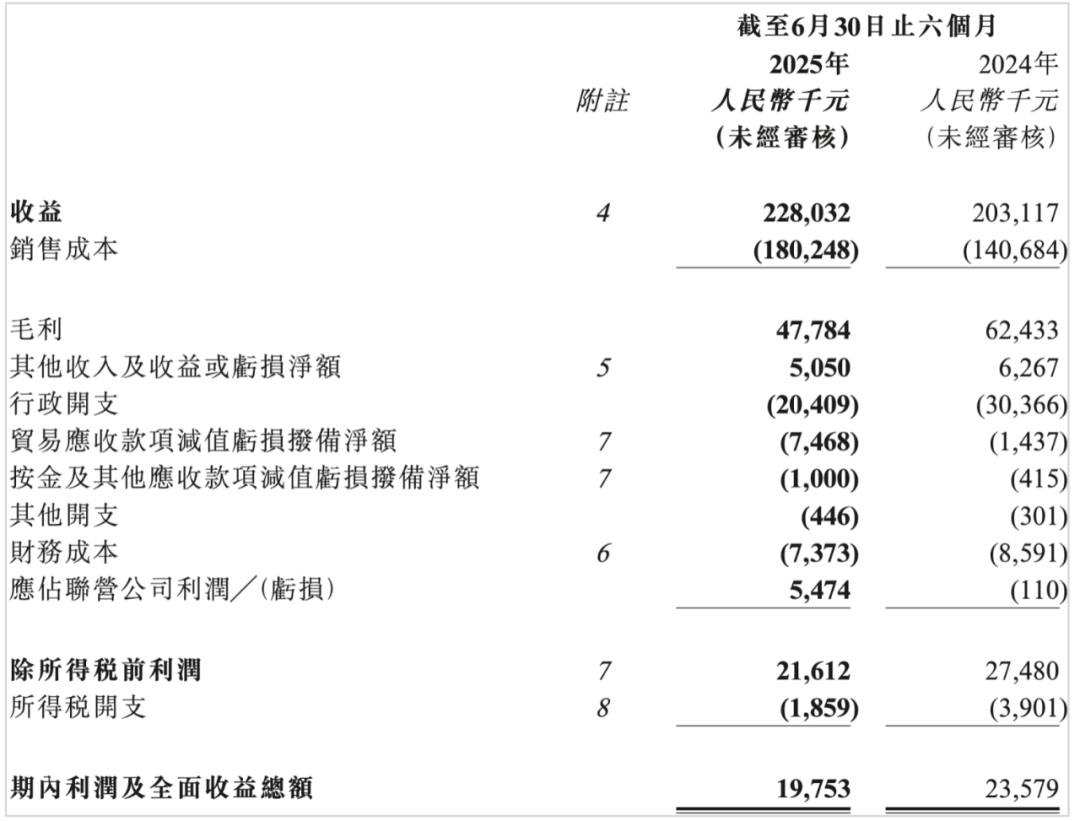 营收增速跑赢大部分同行,但同期录得毛利约9982.8万元,同比增长9.4%,毛利率约22.0%,同比减少4.8个百分点;净利润约为3790.5万元,同比减少5.2%,净利率约8.4%,而上年同期约为11.8%