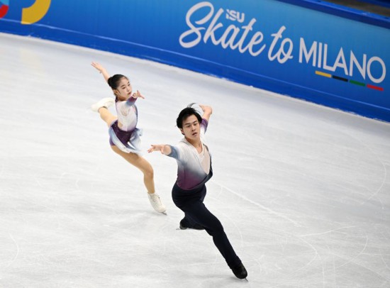 9月20日,张嘉轩/黄一航(右)在国际滑联花样滑冰奥运资格赛双人滑自由滑比赛中。新华社记者 张晨霖 摄