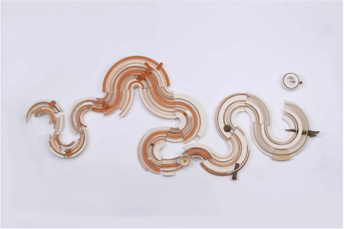 在本次展览中,展厅中央由环形投影呈现的三条展示亚洲工艺思想研究的“航线”。航线的时间轴从公元前的几千年一直到今天,作品分为纤维、金工、陶瓷这三种亚洲领域典型的手工艺的历史、重要事件和代表。内容分为三条主线:第一个以时间为线索,呈现从公元前到近代、现代、当下亚洲手工艺的发展历史。第二条线索是空间,聚焦亚洲47个国家和地区的手工艺整体状态,择取最能代表国家精神和气质的手工艺呈现。第三个线索是事件,从不同手工艺门类,如陶瓷、染织等角度,从它们如何成为世界文化遗产的角度,呈现整体世界。
